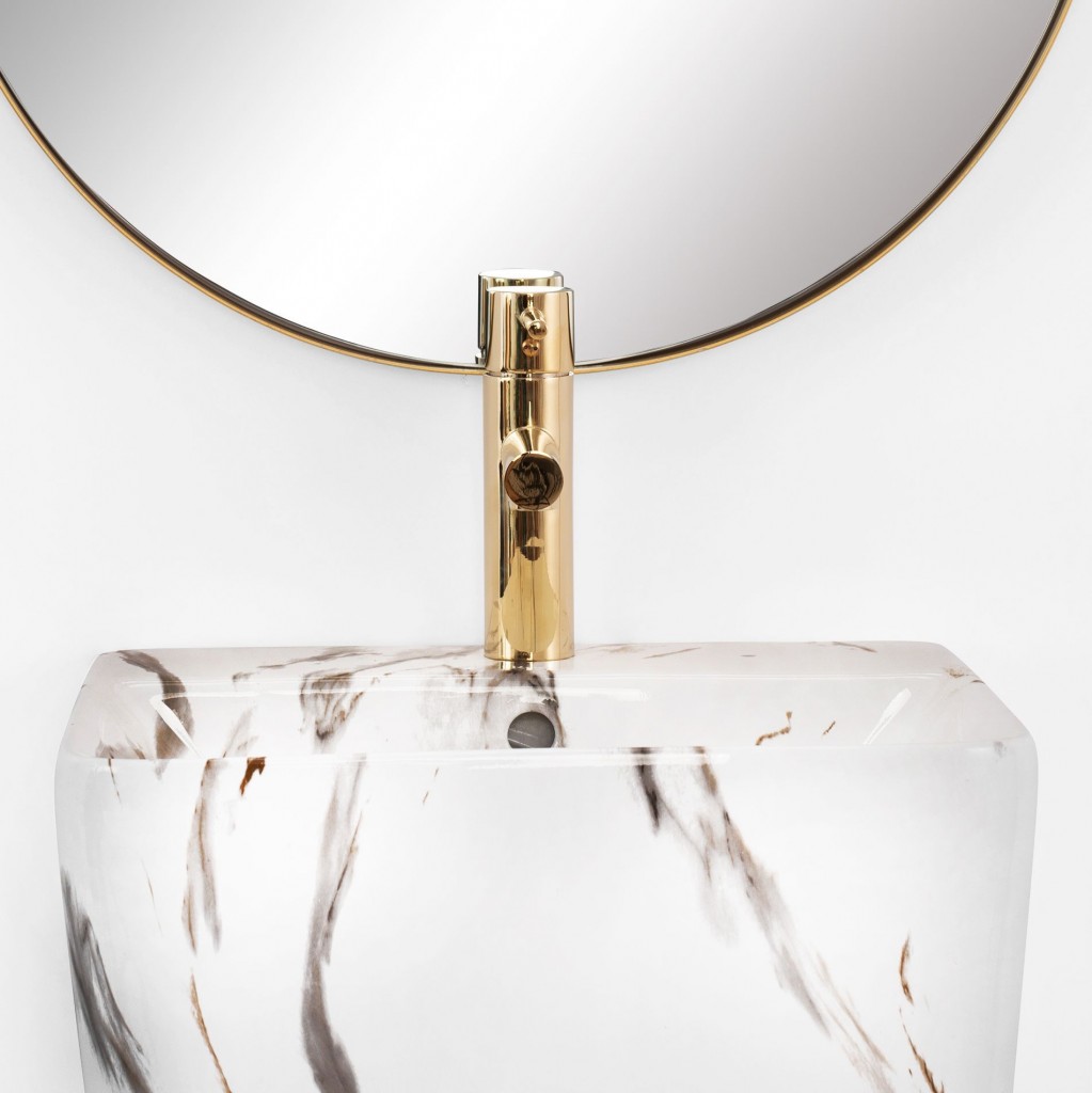 Voľne stojace keramické umývadlo Aris Marble je jedinečné umývadlo vo forme podstavca. Neuveriteľne moderný dizajn sa perfektne hodí do každej štýlovo riešené kúpeľne. Klasický štvorcový tvar, otvor pre batériu a prepad z neho robí praktický prvok vo vašej kúpeľni.