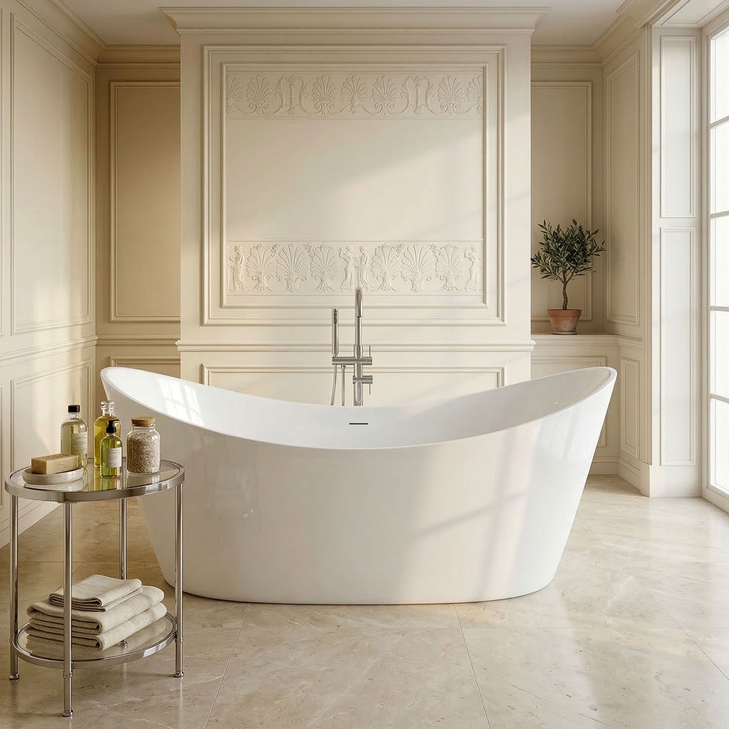Voľne stojaca oválna vaňa Rea Ferrano je kúpeľňový prvok, ktorý nie je pripevnený k stenám alebo podlahe a stojí samostatne v priestore kúpeľne . Je to často luxusný a dizajnový prvok, ktorý prináša do kúpeľne elegantný a moderný vzhľad. Voľne stojace vane sú často spájané s luxusnými kúpeľňami a ponúkajú jedinečný zážitok z kúpania.