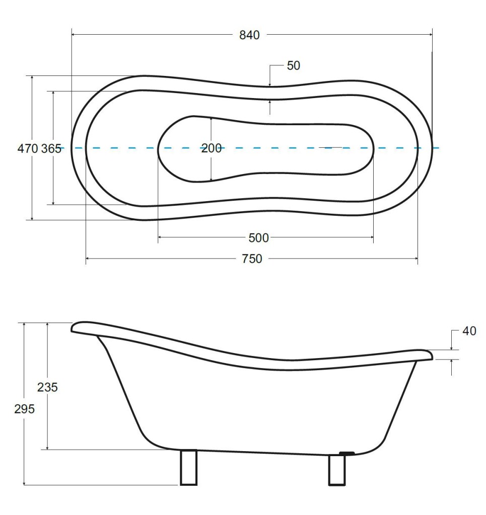Rozmer voľne stojace vaničky:- 850 × 470 mm, objem 10 l