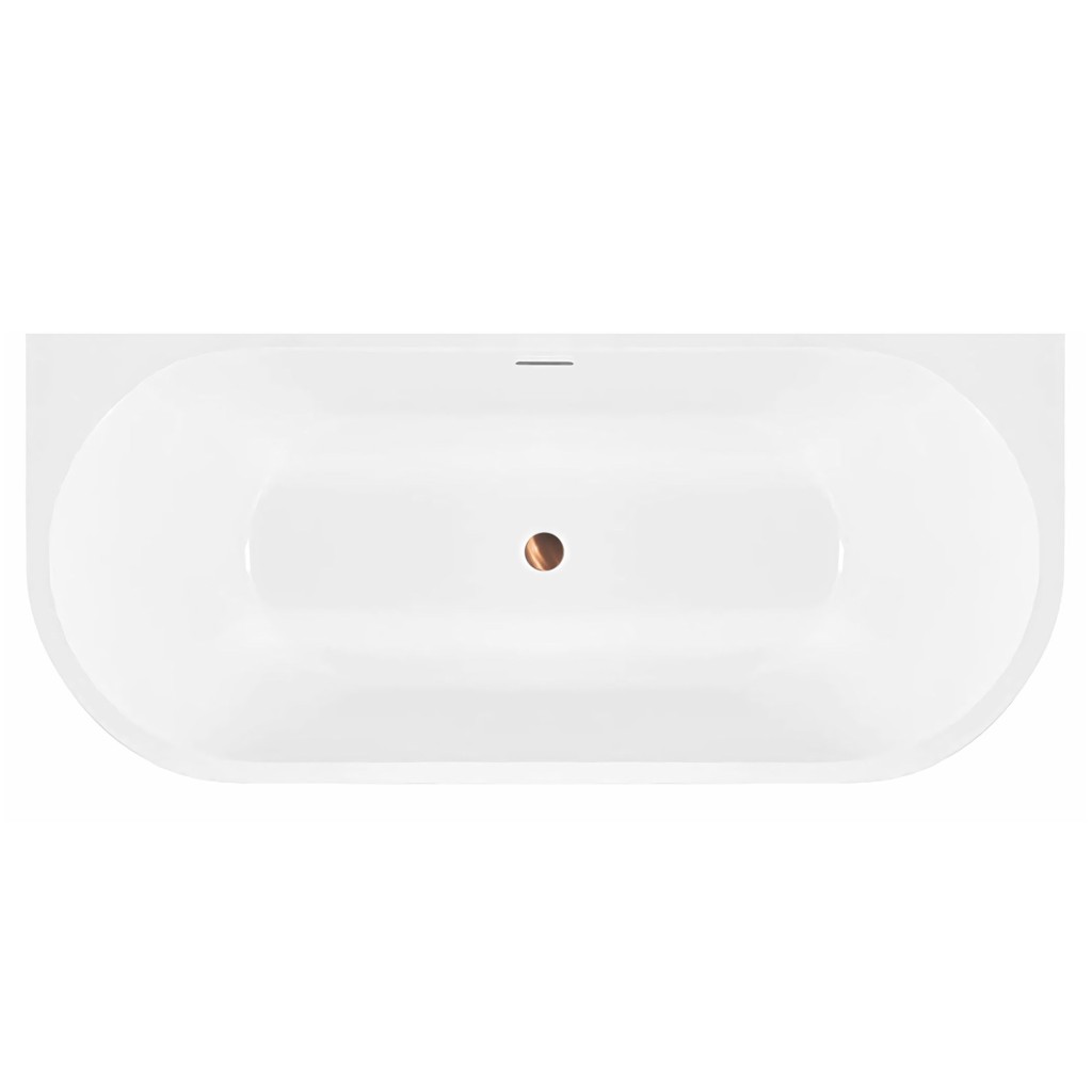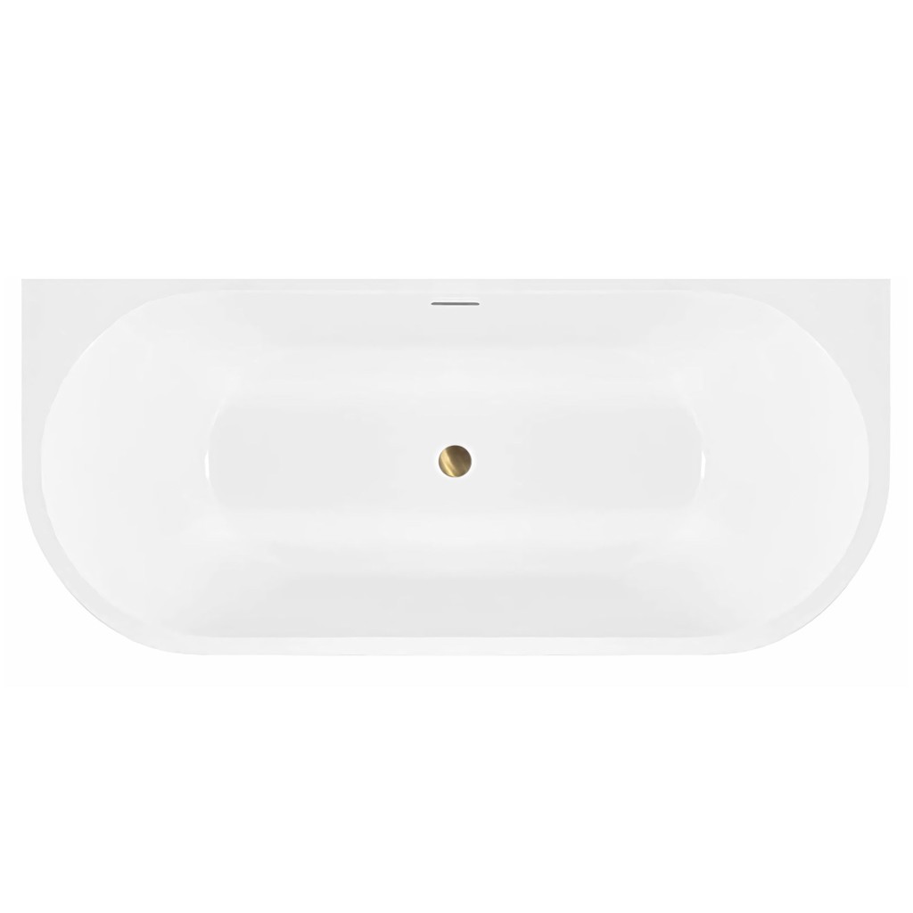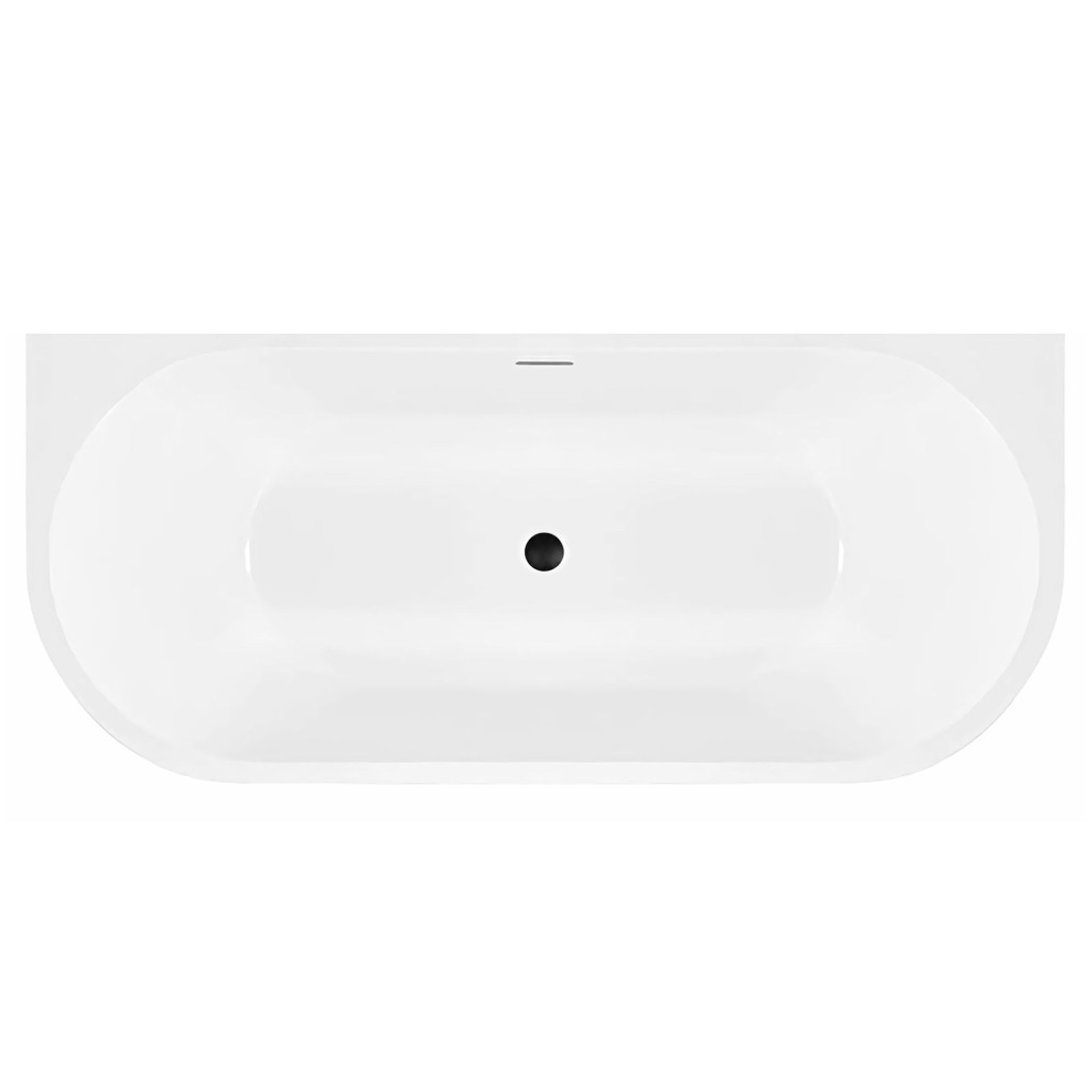 Voľne stojace vane sú často spájané s luxusnými kúpeľňami a ponúkajú jedinečný zážitok z kúpania. Vaňa má hladké, zakrivené okraje a obdĺžnikovú základňu, ktorá je určená na umiestnenie k stene. Prepadový odtok je viditeľný, čo ukazuje na funkčnosť vane pri prevencii preplnenia.