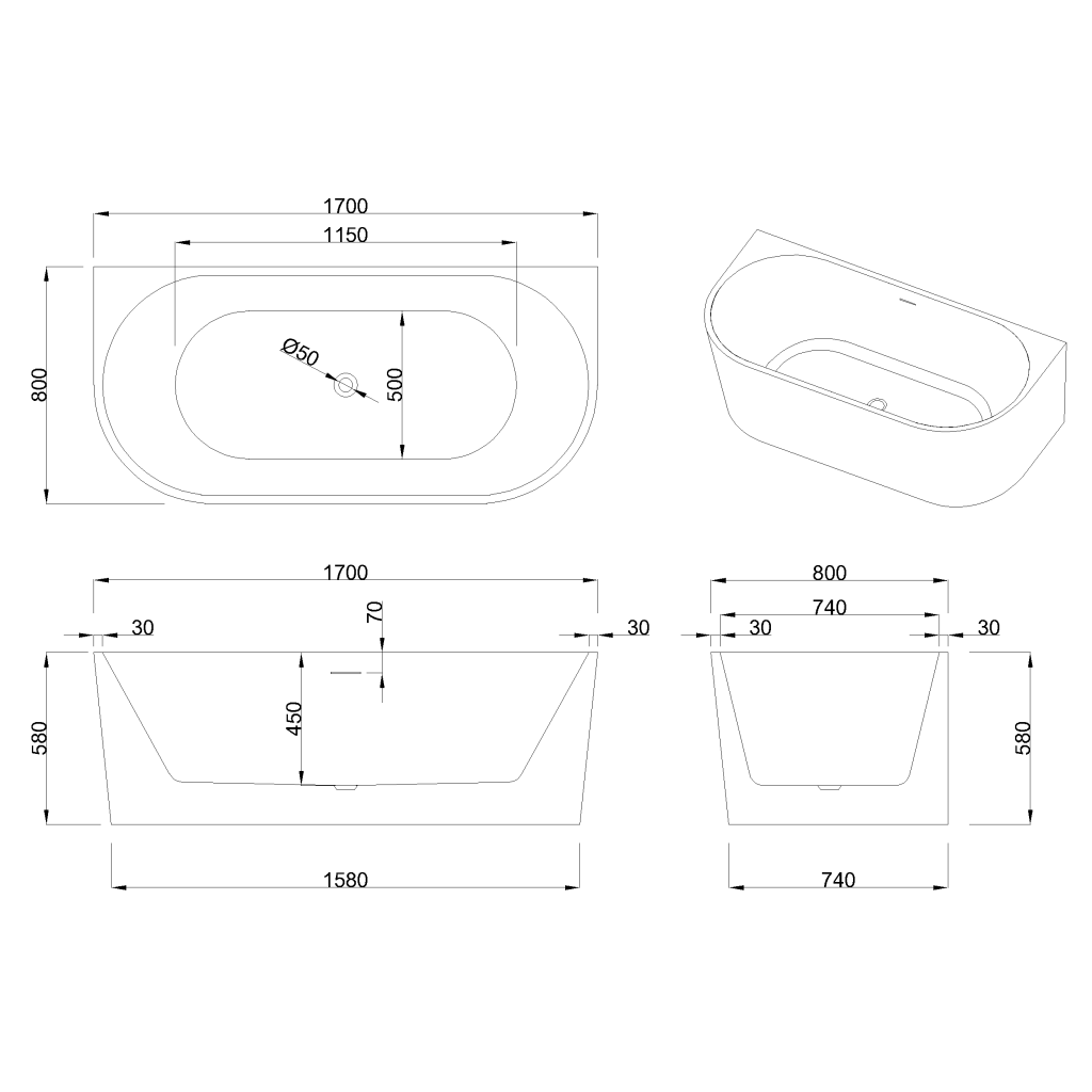 Jej pôsobivá dĺžka 170 cm a šírka 80 cm poskytujú výnimočné pohodlie a voľnosť pri kúpaní, čo z nej robí ideálnu voľbu pre moderné a priestranné kúpeľne. Decentný a harmonický tvar vane umocňuje charakter interiéru a slúži ako jeho estetický ústredný bod.