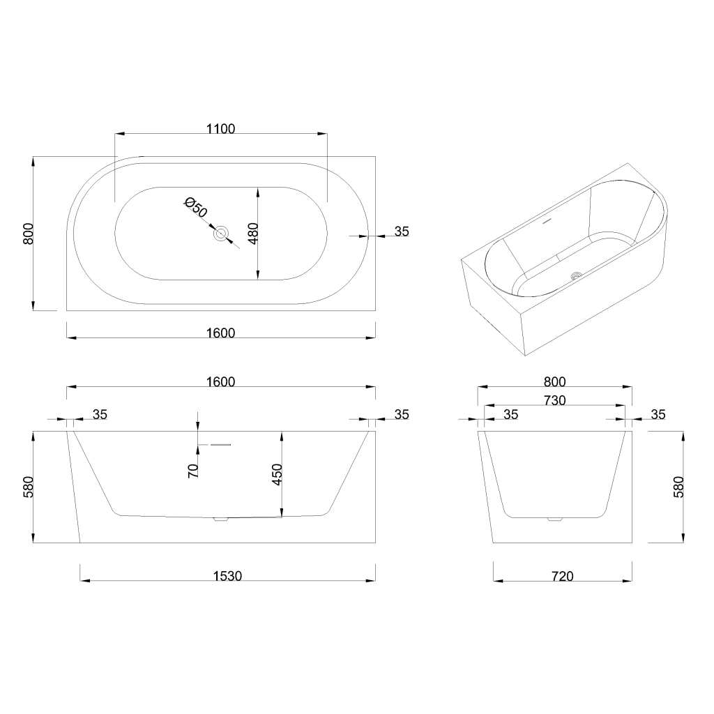 Ľavostranný dizajn umožňuje flexibilné a funkčné plánovanie priestoru, takže je vhodný pre menšie aj väčšie interiéry. S dĺžkou 160 cm a šírkou 80 cm ponúka vaňa výnimočný komfort pri kúpaní a zároveň si zachováva elegantný vzhľad typický pre voľne stojace, nástenné modely.