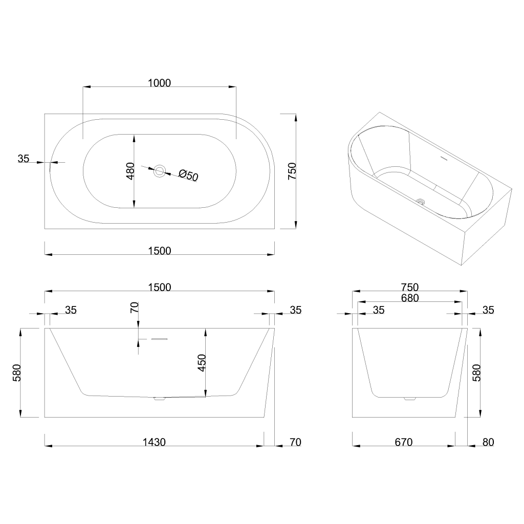 Objavte voľne stojacu vaňu ASTRI s pravou stranou a sifónom o dĺžke 150 cm, určenú pre moderné kúpeľne, kde je dôležitá funkčnosť, pohodlie a estetický vzhľad.