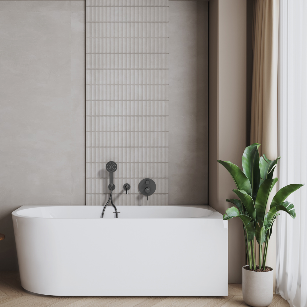 Vyberte si voľne stojacu vaňu ASTRI so šírkou 150 cm, ktorá je pripevnená k závesu, a vytvorte si pohodlný a elegantný kúpací priestor, ktorý sa dokonale hodí do vašej kúpeľne.