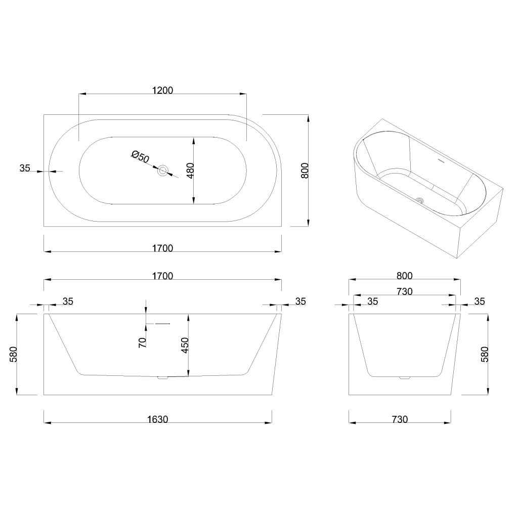 Objavte voľne stojacu vaňu ASTRI s pravou stranou a sifónom o dĺžke 170 cm, určenú pre priestranné a moderné kúpeľne, kde sa snúbi pohodlie a estetika.