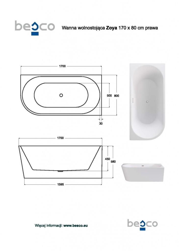 Z dôvodov Covid 19 a veľkého nárastu objednávok, sú výrobné kapacity závodu obmedzené a preťažené. Preto sa doba dodania môže predĺžiť až na 6–8 týždňov od objednania.Vaňa v ľavom/pravom prevedení k priebežnej stene ZOYA sa Vám odmení pocitom vysokého komfortu . Budete ležať v kúpeli a okolo Vás bude dosť miesta, nič Vás nebude obmedzovať. Vaňa aj vonkajší plášť tvoria kompaktný celok . Vaňa sa štandardne dodáva vedvou praktických rozmeroch v žiarivo bielej farbe. Hladký povrch umožňuje jeho ľahkú údržbu. Vaňu nie je potrebné obmurovať a obkladať a súčasťou vane je aj kvalitná odtoková súprava (systém s prepadom ).