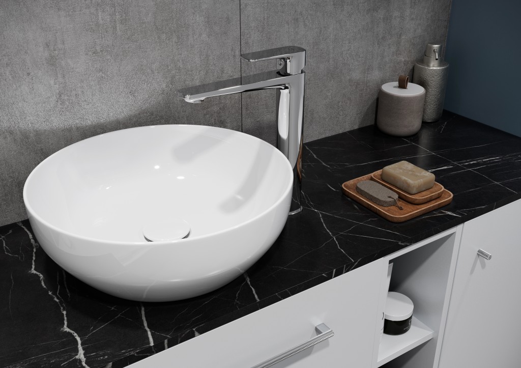 Kolekcia ďalej zahŕňa kúpeľňové armatúry: bidetové, sprchové, vaňové a sprchové batérie, ďalej batérie na nábytok a umývadlá na dosku. Medzi vodovodnými batériami si môžete vybrať variant v módnej čiernej alebo matne zlatej, alebo klasický lesklý chróm.