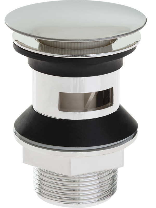 V spoločnosti Kuchinox dbáme na to, aby všetky povrchové úpravy boli praktické aj štýlové. Preto sú zátky odtoku click-clack perfektným doplnkom každej kúpeľne. Sú navrhnuté na použitie s umývadlami a sú k dispozícii s prepadom alebo bez neho. Zátky sú k dispozícii v rôznych povrchových úpravách, takže ich ľahko zladíte s vašimi armatúrami a vytvoríte tak ucelený štýl kúpeľne. Systém zatvárania a otvárania je vybavený špeciálnou pružinou z nerezovej ocele. V zatvorenom stave je navyše zátka vďaka špeciálnemu tesneniu a gravitácii úplne vodotesná. Druhá patentovaná funkcia uľahčuje čistenie celého mechanizmu. Vďaka jednoduchej konštrukcii je možné celú zátku z odtoku vybrať, odstrániť všetky nečistoty a potom ju rovnako ľahko znova nainštalovať.
