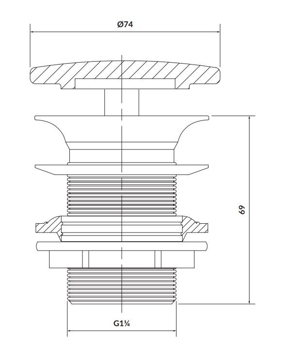 Matna biela keramická zátka s mechanizmom z odolnej mosadze a silikónovým tesnením. Výpusť nemožno uzatvárať pretože je určená do umývadiel bez prepadu, teda nemôže dôjsť k nechcenému pretečeniu umývadla. Keramická zátka dokonale ladí s bielou matnou farbou keramiky série LARGA.