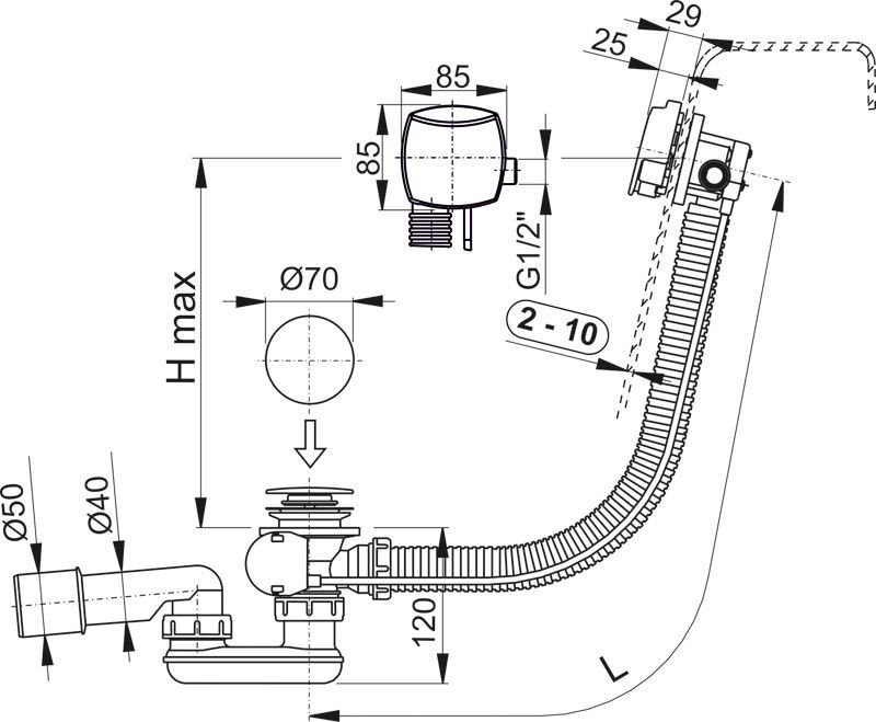 Výpusť s napúšťaním Santech 42 cm - znížená VYPSAN42-S