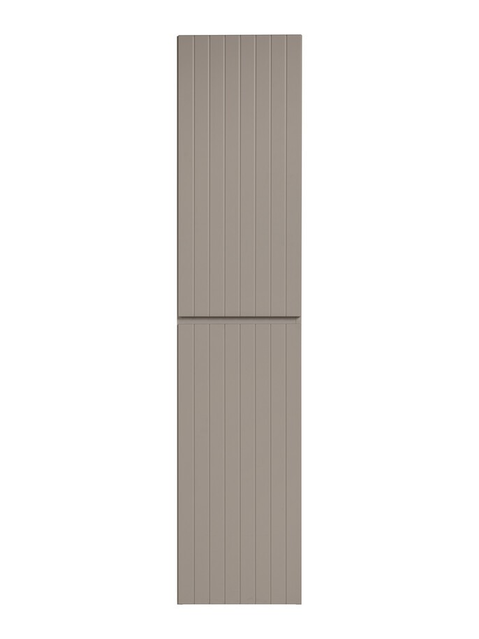 Moderná závesná skrinka v decentnom kašmírovom matnom odtieni, ideálna pre štýlové a funkčné usporiadanie kúpeľne.