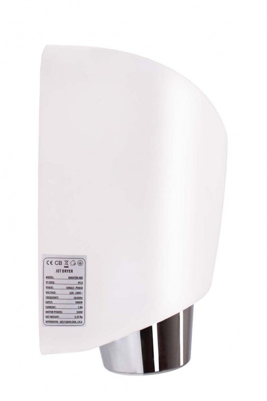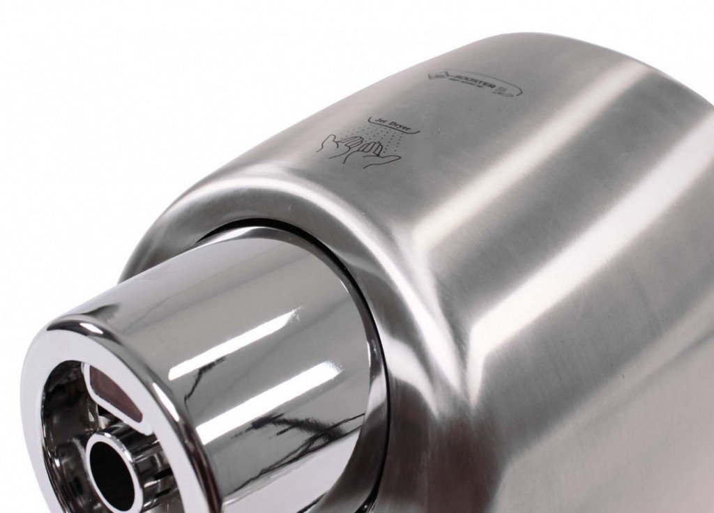Sušič rúk BOOSTER sa od iných osúšače vyznačuje výraznou pochrómovanou tryskou kruhového tvaru. Vďaka silnému 550 W motoru je vysušenie rúk veľmi rýchle.