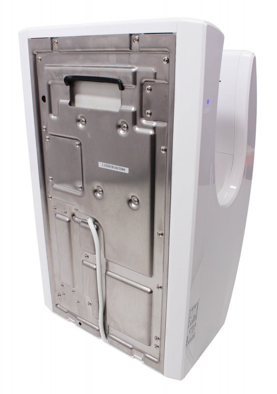 Kovový predný kryt v striebornom provedenníV striebornom prevedení je Jet Dryer COMPACT v porovnaní s ostatnými sušiči Zodolnené voči hrubšiemu zaobchádzaniu. Predná strana tohto sušiča je chránená kefovaným nerezovým plechom. Telo je rovnako ako v bielom prevedení vyrobené z odolného ABS plastu.