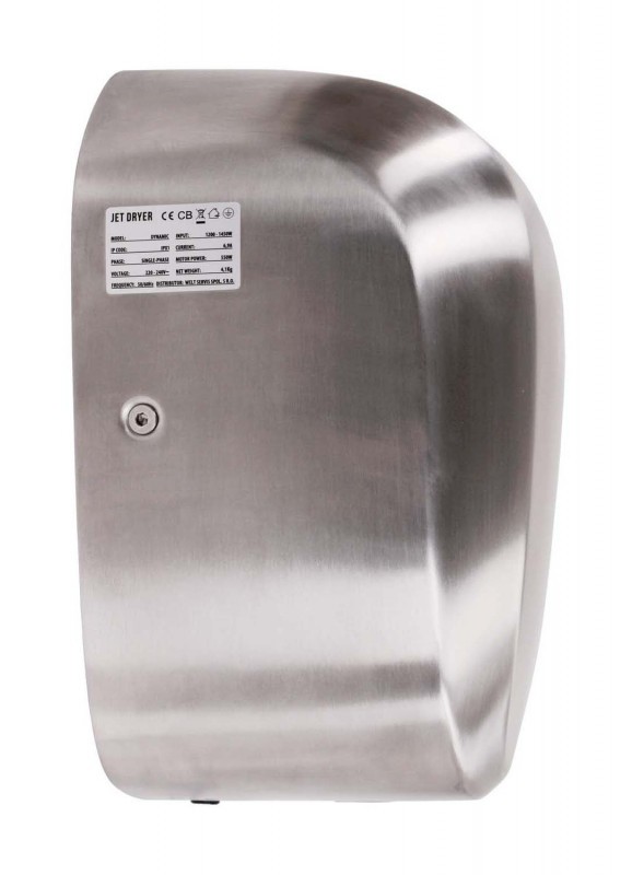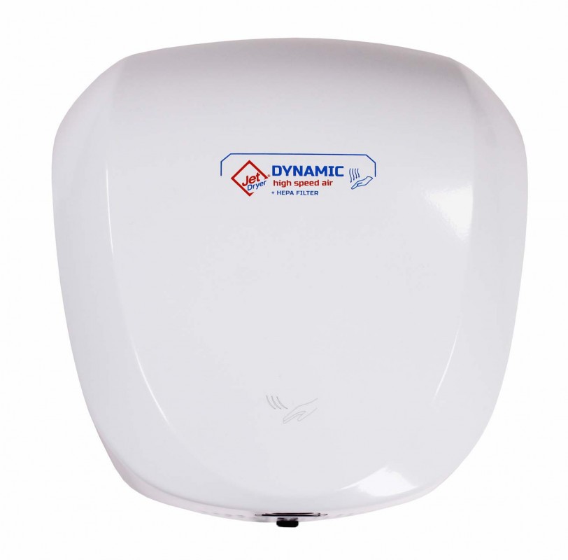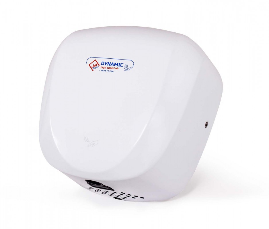 DYNAMIC je jediný sušič rúk z rady Jet Dryer vybavený HEPA filtrom. Silne dimenzovaný motor v priestrannom kovovom kryte predurčuje tento sušič do prevádzok s veľmi frekventovaným prevádzkou. Ohrev vzduchu sa spína automaticky podľa okolitej teploty.