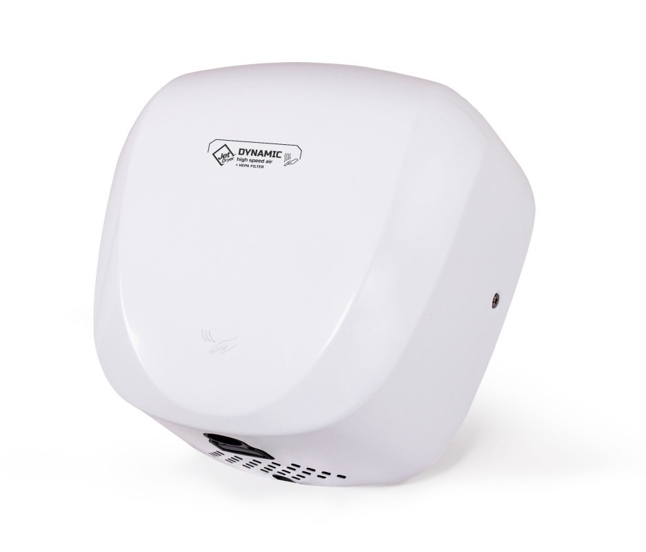 Jet Dryer DYNAMIC je jediný teplovzdušný sušič na trhu vybavený HEPA filtrom. Vďaka tomu je vzduch vyfukovaný na ruke vždy maximálne hygienický a nezávadný. HEPA filter zachytí až 99,97% baktériu vírusov a ďalších drobných častíc. Sušič je úplne bezkontaktné, aktivuje sa automaticky po vložení rúk pod prístroj. Zaoblený dizajn krytu umožňuje jednoduché čistenie.