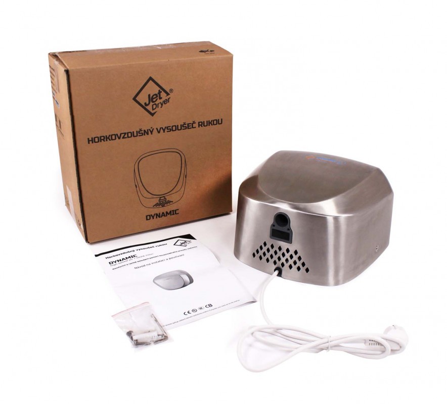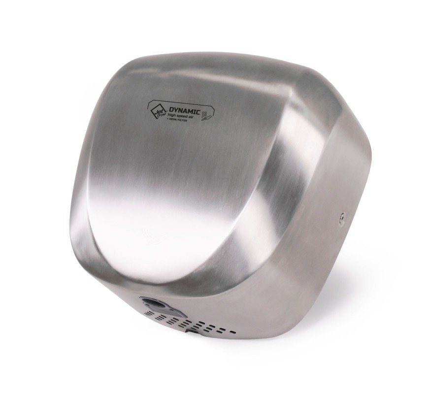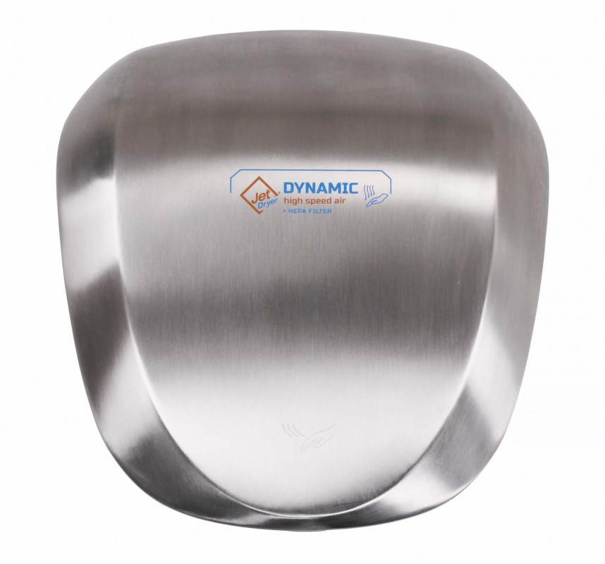 DYNAMIC je jediný sušič rúk z rady Jet Dryer vybavený HEPA filtrom. Silne dimenzovaný motor v priestrannom kovovom kryte predurčuje tento sušič do prevádzok s veľmi frekventovaným prevádzkou. Ohrev vzduchu sa spína automaticky podľa okolitej teploty.