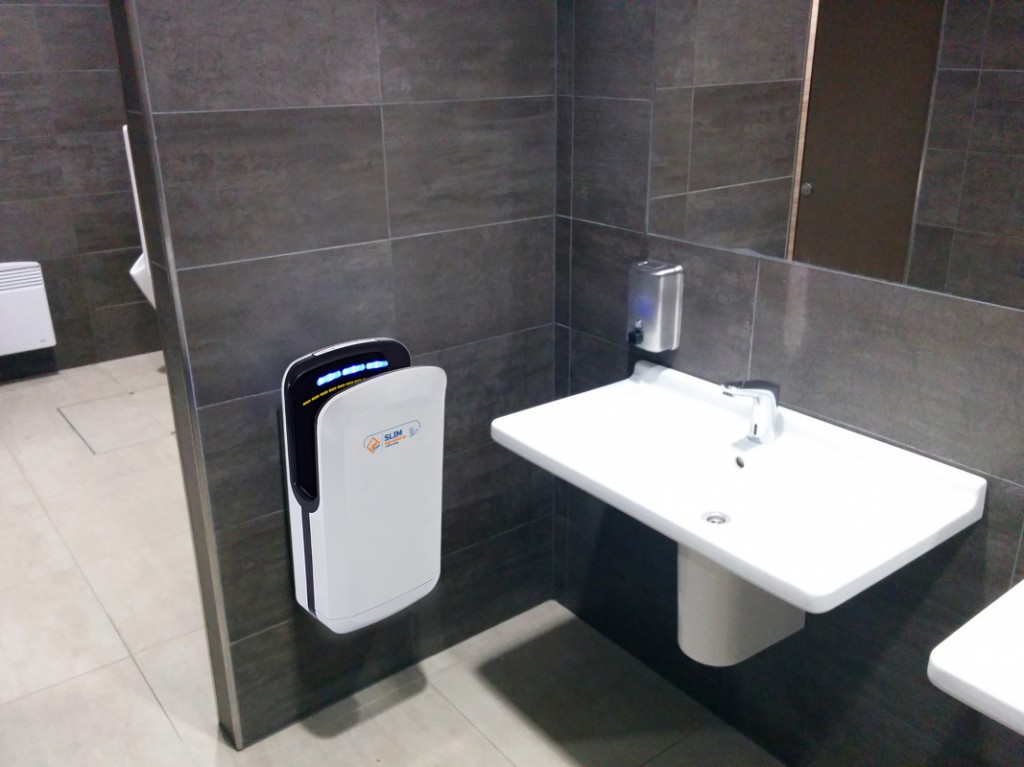 Hygienické osušenie rúkPrevádzka sušiča je úplne bezkontaktné, takže nedochádza ku krížené kontaminácii. Nasávaný vzduch je filtrovaný cez HEPA filter. HEPA filtrom eliminuje viac ako 99,97% drobných prachových častíc veľkosti 300 nanometrov.