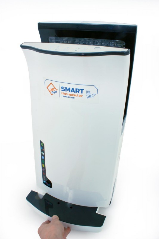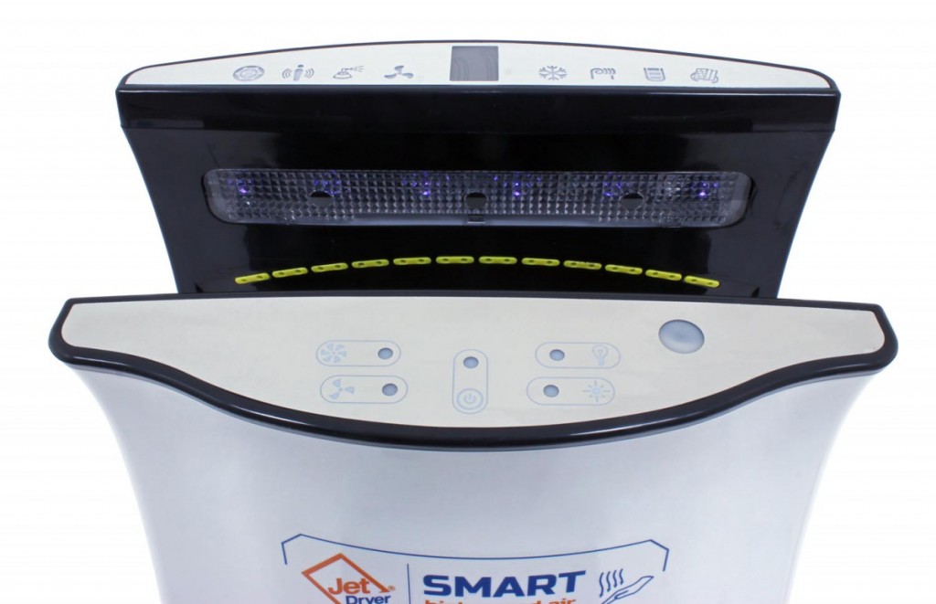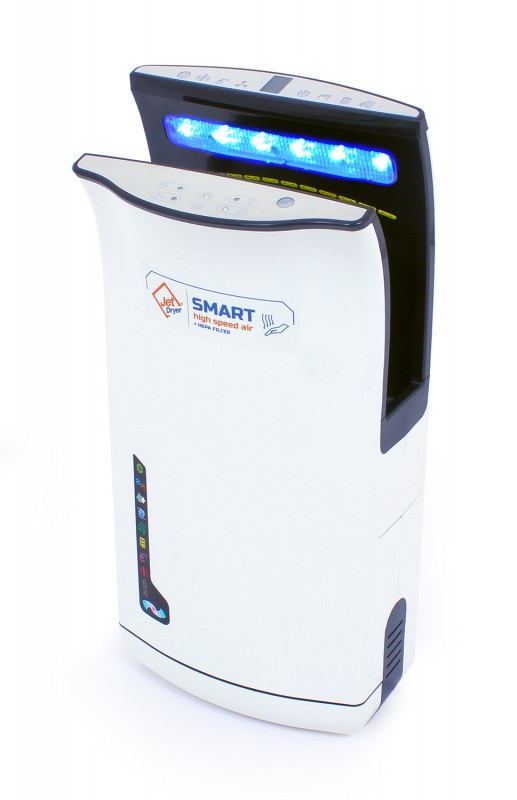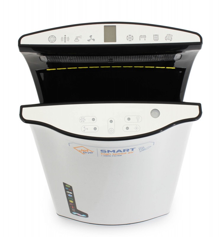 Jet Dryer SMART automaticky ohrieva vzduch zakaždým, keď je okolitá teplota nižšia ako 20 ° C. SMART je tiež možné prepnúť do režimu, v ktorom je ohrev vzduchu zapnutý neustále, bez ohľadu na okolitej teplote.