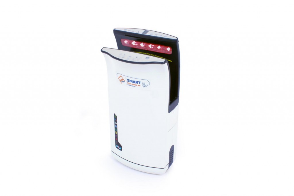 Vďaka netradičnému, bodovému tvaru trysiek je prúd vzduchu výrazne koncentrovanejší. SMART tak vodu z rúk nielen sušia, ale predovšetkým stiera.