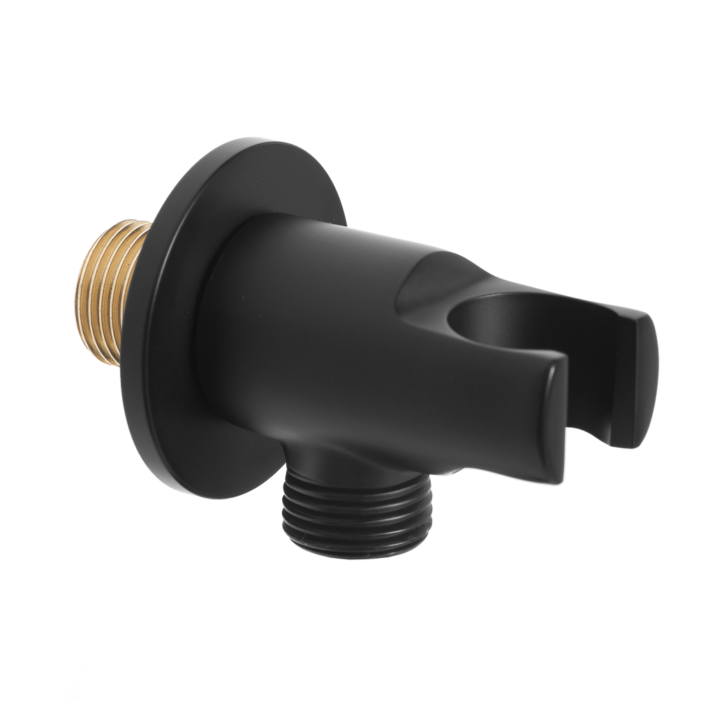 Držiak ručnej sprchy s vyústením v čiernom prevedení pre podomietkovú montáž , okrúhle.