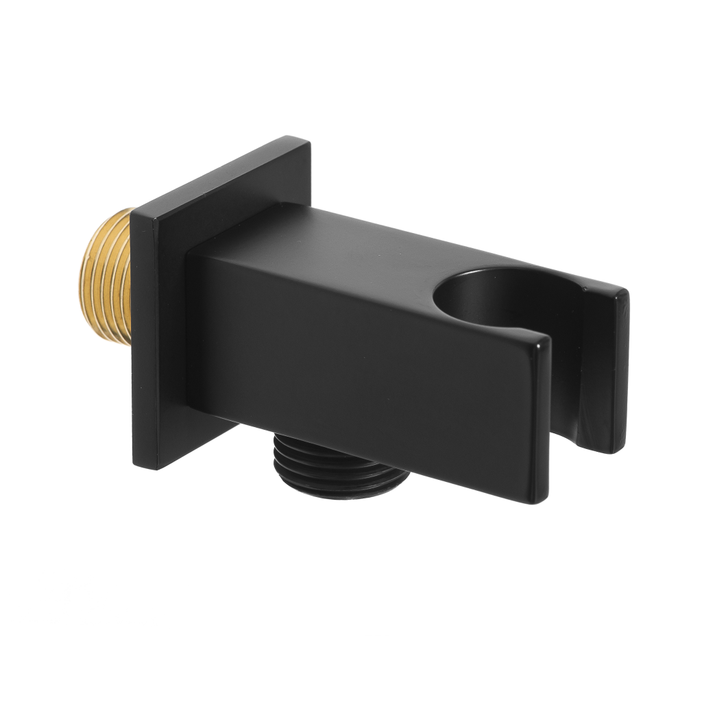 Držiak ručnej sprchy s vyústením v čiernom prevedení pre podomietkovú montáž , hranatý.