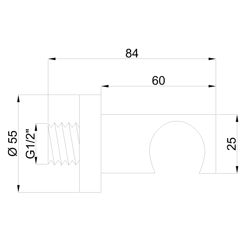 Držiak ručnej sprchy s vyústením v chrómovom prevedení pre podomietkovú montáž , okrúhly.