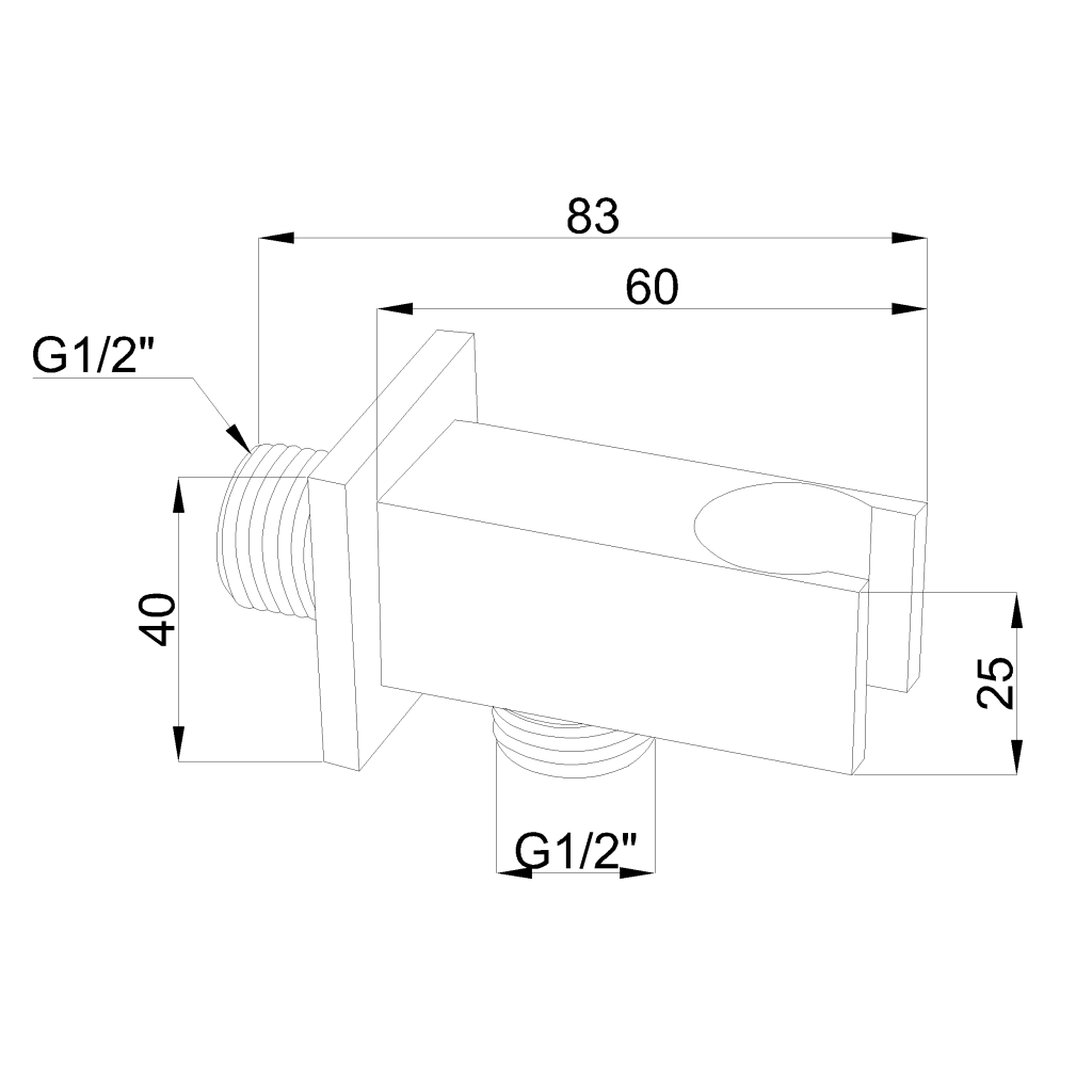 Držiak ručnej sprchy s vyústením v chrómovom prevedení pre podomietkovú montáž , hranatý.