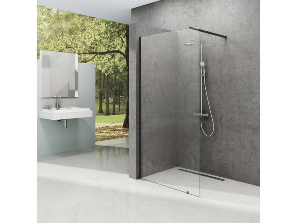 - jednodielna sprchová stena, ktorú tvorí pevná priečka a kovania