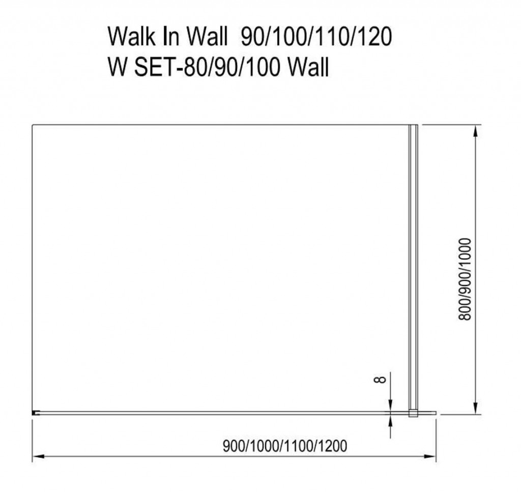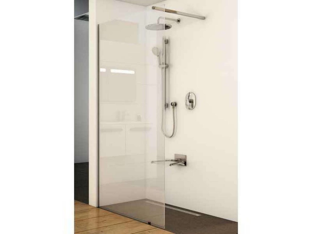 - jednodielna sprchová stena, ktorú tvorí pevná priečka a kovania