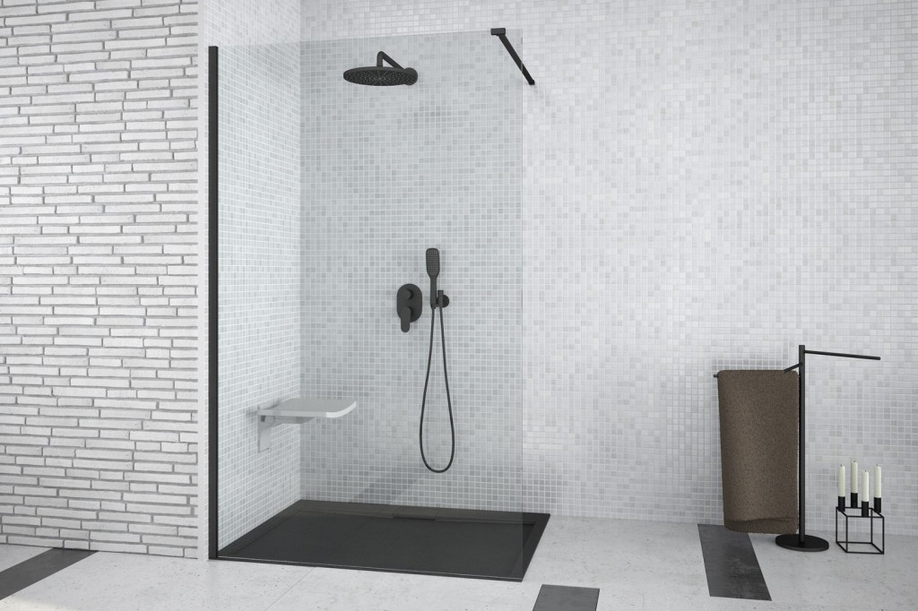Walk-in sprchovací kút AVEO BLACK ponúka revolučné riešenie bez použitia pohyblivých dverí, rohových vzpier a pántov. V spojení s modernými odtokovými kanálikmi vznikne úplne bezbariérový priestor pre sprchovanie. Zásteny sú vyrobené z bezpečnostného skla.