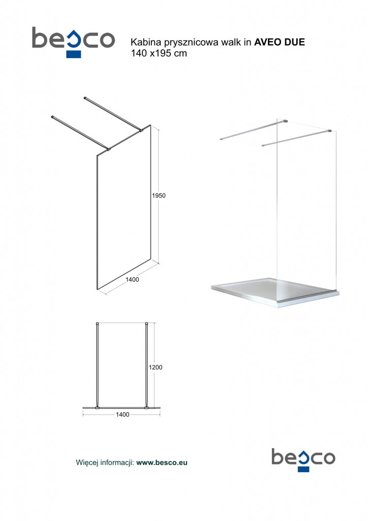 Exkluzívny walk-in sprchovací kút AVEO DUE. Bezdverový sprchovací kút tvorí iba pevná stena, ktorá je zaistená rozpernou tyčou s maximálnou dĺžkou 120cm . Ľahko tak vytvoríte sprchovací kút presne pre váš priestor. Vďaka tejto konštrukcii ľahko vytvoríte bezbariérový sprchovací kút . Možná inštalácia iba priamo na podlahu.