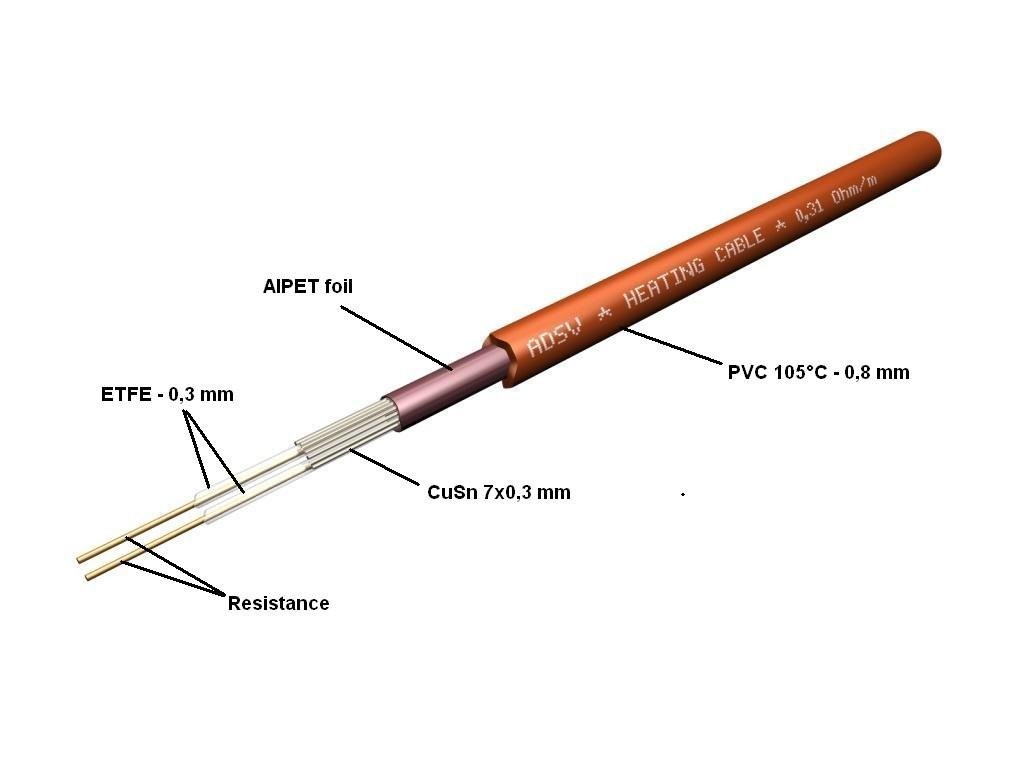 Dvoužilový topný kabel - připojovací vodič je pouze na jednom konci topného kabelu. Při instalaci není nutné vracet se s kabelem zpět k místu připojení.