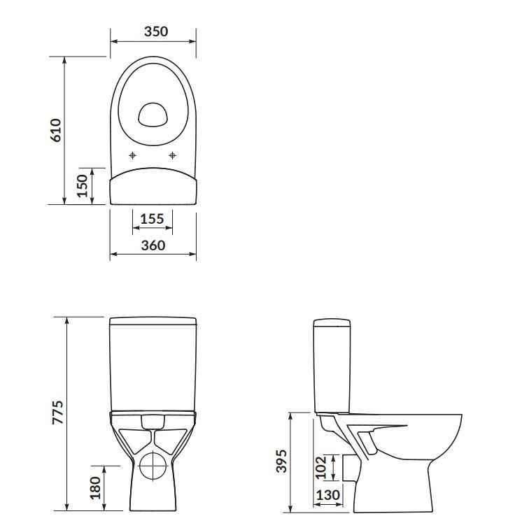 Súčasťou WC kombi je duroplastové WC sedátko s pomalým zatváraním.