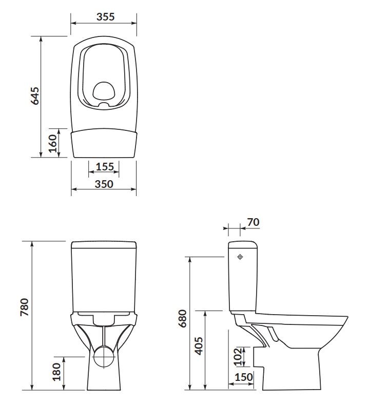 WC kombi misa CARINA NEW CleanOn bez oplachového kruhu so zadným odpadom a prívodom vody z boku nádrže a funkcií splachovanie 3 / 5l.