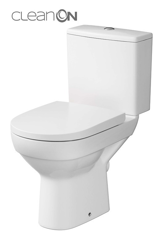 WC kombi stojaci CITY CLEAN ON s unikátnym bielym povrchom keramiky je so zadným vodorovným odpadom a prívodom vody z bočnej časti nádrže s funkciou splachovania 3/5 l, ktorá výrazne zníži spotrebu vody.