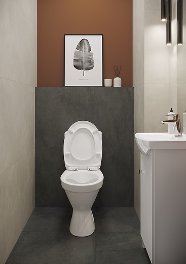 WC kombi Cersania SIMPLEON so zadným odpadom, prívod vody z bočnej časti nádrže s úsporným splachovacím systémom 3 / 6l. Súčasťou je duroplast antibakteriálne sedátko s pomalým sklápaním / soft close / a jednoduchým odobratím a upevnením sedátka.