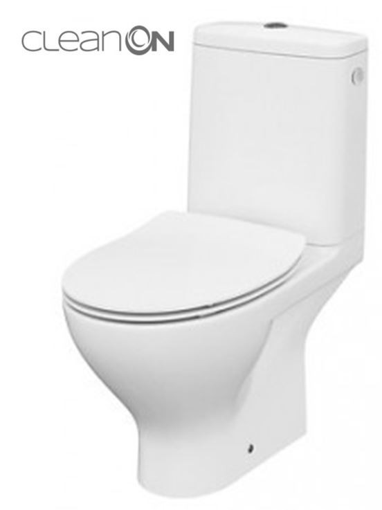 WC kombi MODUO CLEAN ON so zadným odpadom, prívod vody z bočnej časti nádrže s úsporným splachovaním 3 / 5l. Súčasťou je duroplast antibakteriálne sedátko SLIM s pomalým sklápaním /soft close/ a jednoduchým odobratím a upevnením sedátka EASY OFF.
