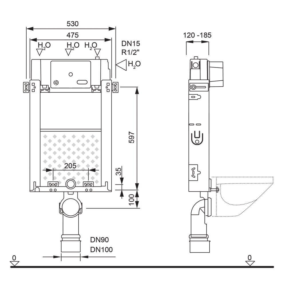 • Prvok na zamurovanie s podmietkovou nádržkou pre závesné WC misy