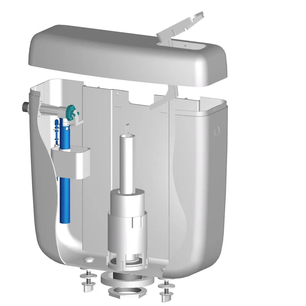 Moderné plastové WC nádržka PERLA s úspornou prevádzkou je tvorená dvoma plášťami, ktoré zamedzujú nežiaducemu oroseniu nádržky. Výrobok je vybavený dvojčinným úsporným vypúšťacím ventilom a napúšťacím ventilom. Splachovacie armatúra z produkcie našej spoločnosti, ktorá je súčasťou nádržky zaisťuje individuálnu voľbu veľkosti automatického dávkovania vody, ktoré zaisťuje úsporu vody 30 - 50 m3 ročne, pri prevádzke v dvoch až štvorčlennej domácnosti. Nádržka môže byť umiestnená ako vysoko položená, nízko položená alebo COMBI. Výrobok možno uviesť do chodu páčkou z boku (pri inštalácii vysoko položenej) alebo stop-tlačítkom zo zhora (v prípade inštalácie nízko položené a COMBI). Prevedenie WC nádržky a splachovacie armatúra sú zárukou výbornej kvality a dĺžky životnosti výrobku. Túto skutočnosť dokazuje aj poskytovaná záručná lehota v dĺžke 3 roky od dátumu predaja výrobku spotrebiteľovi. WC nádržka PERLA je štandardne vyrábaná vo farbe bielej. Pri dopyte na primerané množstvo je možné dodanie výrobku vo farebnom prevedení podľa priania zákazníka.