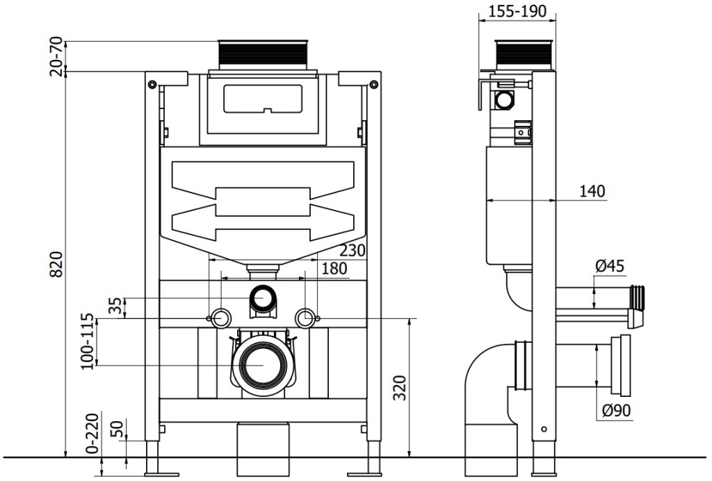 Technické dáta: Výška rámu: 82 cm Šírka rámu: 50 cm Hrúbka rámu: 14 cm Pozinkované nohy, nastaviteľné v rozmedzí 0-22 cm Pozinkované konzoly, nastaviteľné v rozsahu 140-190 mm Nádrž izolovaná proti kondenzácii Množstvo splachovacej vody je možné nas… (celý popis)