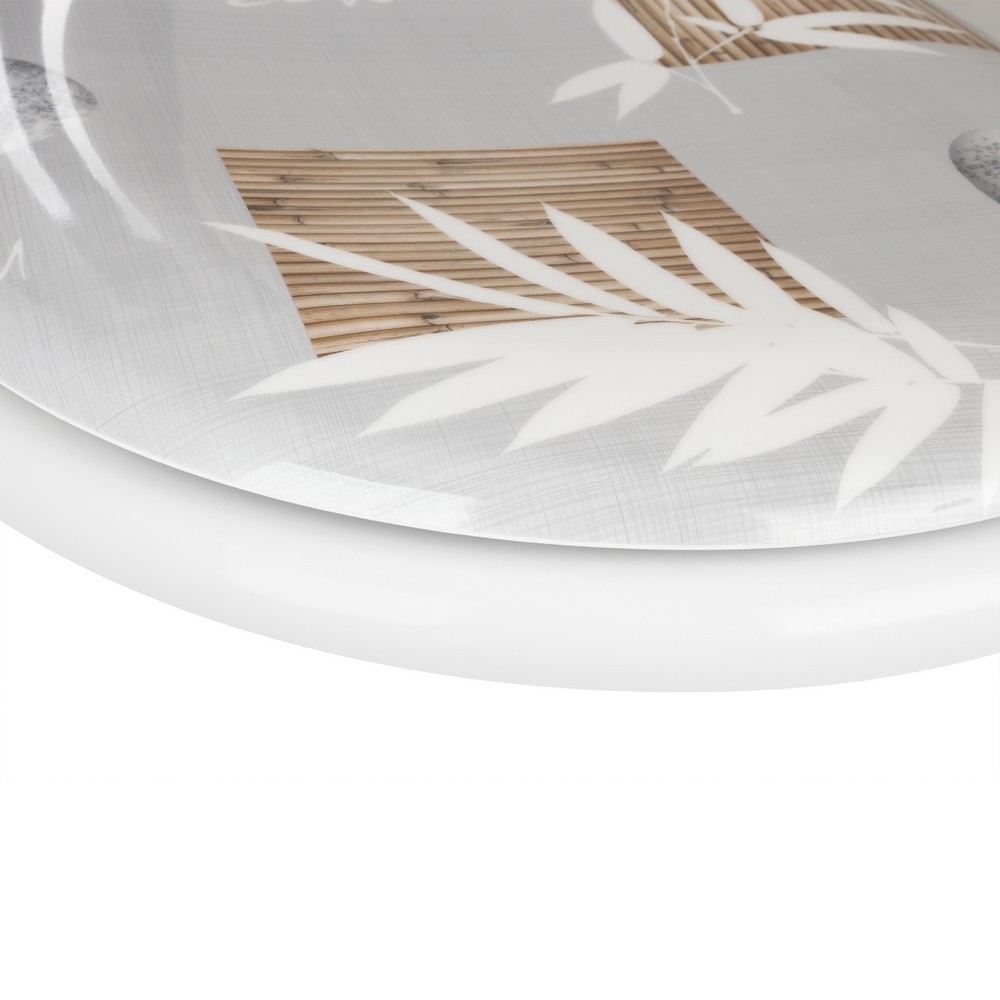 Popis: WC sedátko AWD INTERIOR 1999 Calmi spája moderný dizajn a funkčnosť. Vyrobené z odolného duroplastu, vyznačuje sa vysoko lesklým povrchom a elegantnou potlačou bielych vetiev, mriežkou z bambusového dreva a kamienkami na šedom pozadí. Jeho oválny tvar a univerzálna veľkosť sa hodí k štandardným záchodovým misám. Systém pomalého zatvárania SOFT CLOSE zaisťuje tiché a pohodlné používanie. Súčasťou je kompletná montážna súprava.