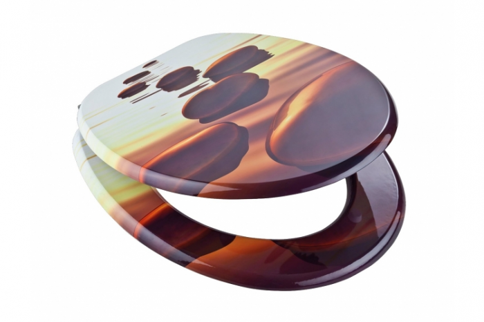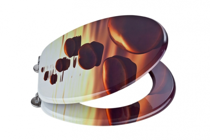 • WC dosky High Gloss obsahujú dokonale spracovaný motív fotografie vo vysokom rozlíšení a nejedná sa teda o fólie, ale o kvalitne spracované fotografie zaliate v akrylu.