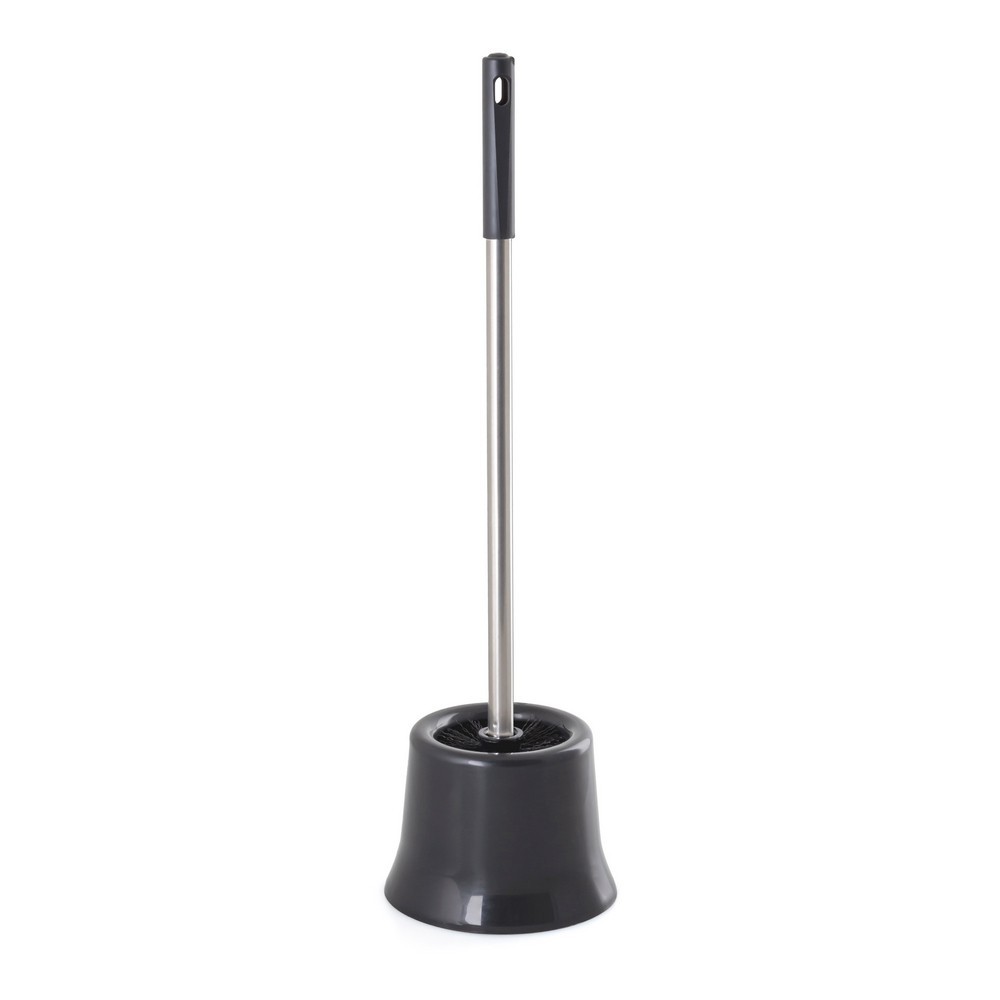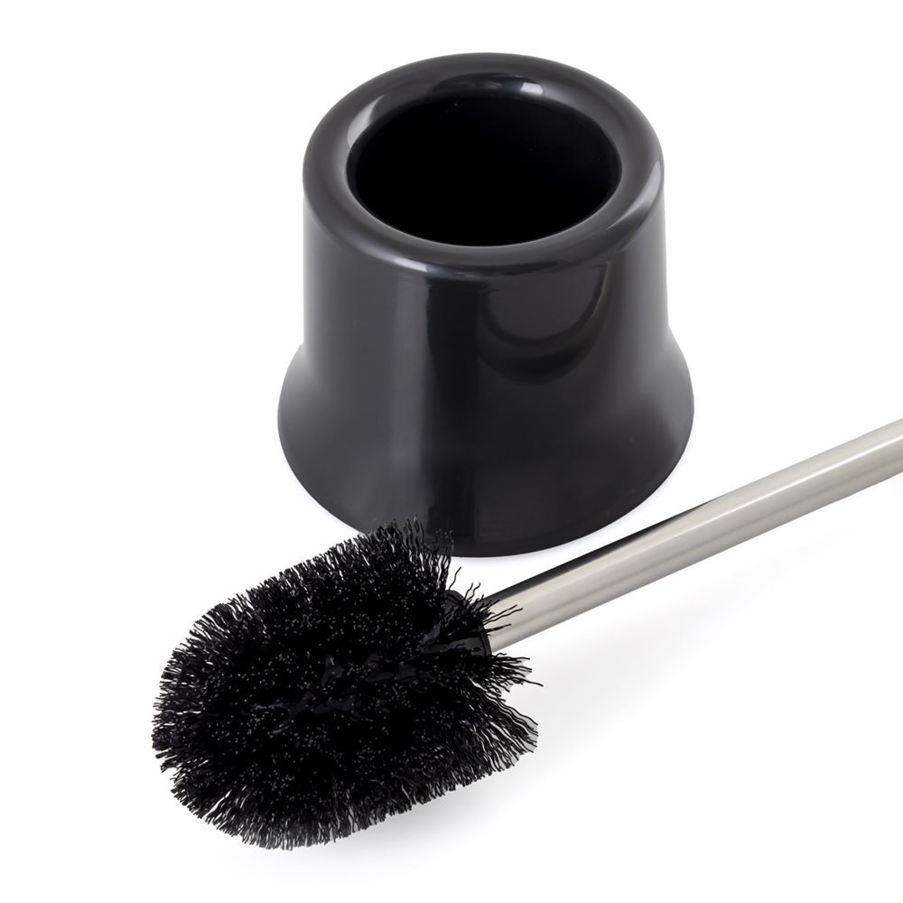 WC kefa s plastovou nádobou v čiernej farbe poskytuje praktické a estetické riešenie na udržanie čistoty v kúpeľni. Ľahká a hladká nádoba sa ľahko čistí a zaisťuje pohodlné používanie. Čistiaca hlavica kefky je vyrobená z hustých, plastových štetín v čiernej farbe, účinne odstraňuje nečistoty a usadeniny z povrchov. Priemer hlavy kefky je približne 75 mm.