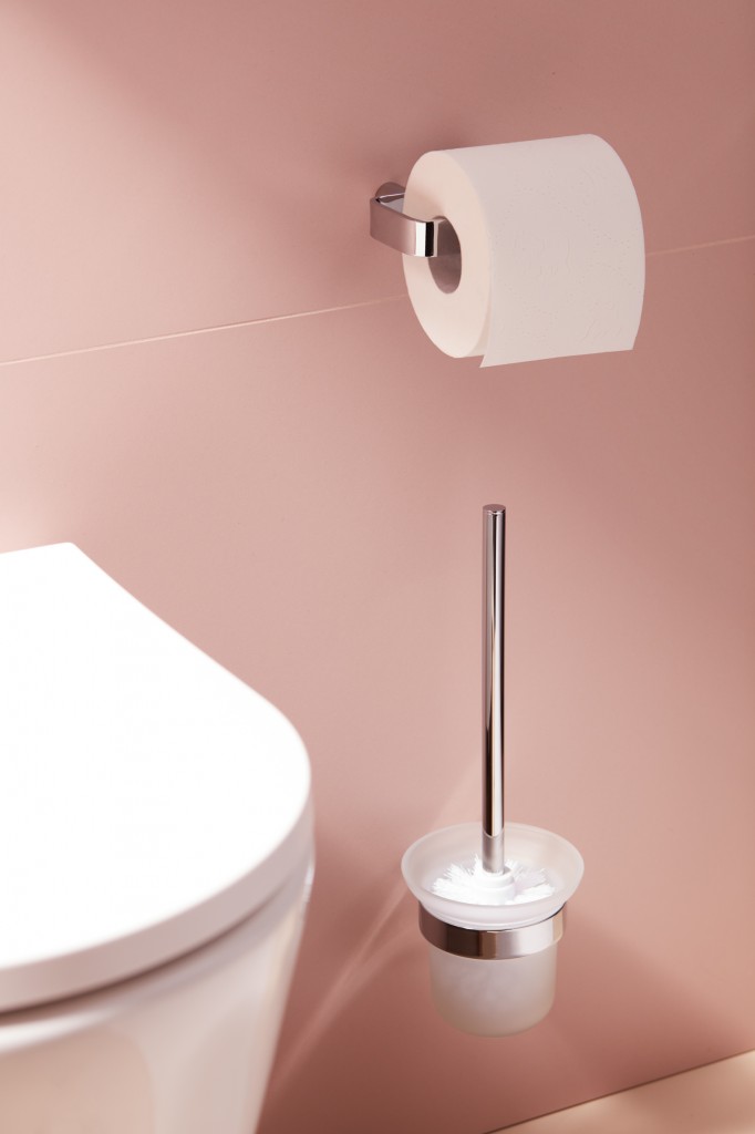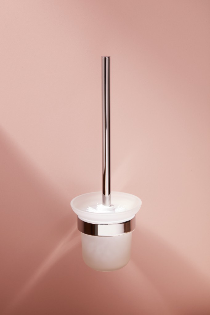 Kovová WC štetka s pohárom z matného skla od výrobcu KFA je určená na inštaláciu vŕtaného spoja.