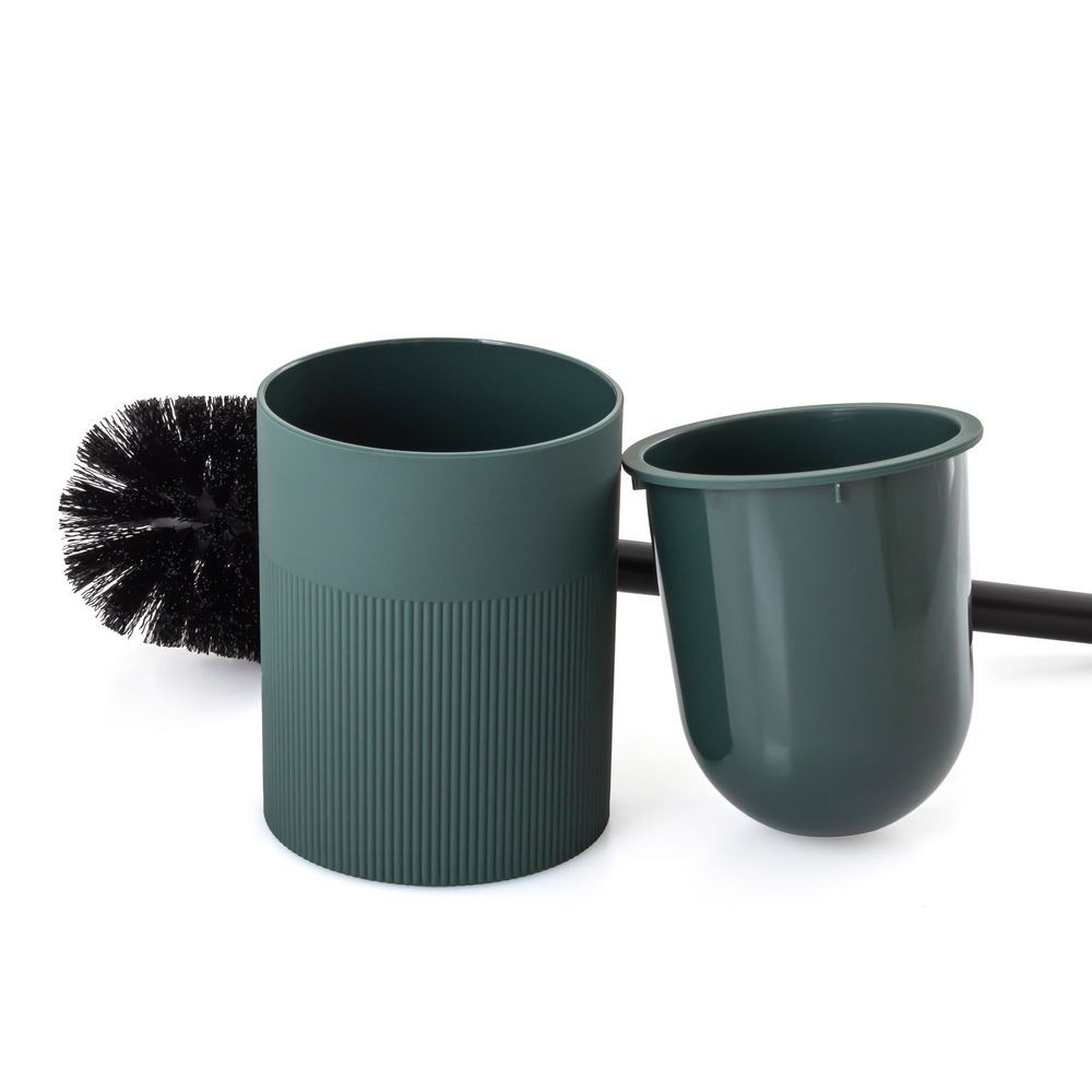 WC kefa zo série Frida vyzerá očarujúce v krásnom odtieni fľaškovo zelenej. Držiak kefky je vyrobený z elegantného matného plastu, ktorý mu dodáva osobitý charakter. Hlava kefky a rukoväť sú navrhnuté v sýto čiernej farbe a dokonale dopĺňajú fľaškovo zelenú farbu držiaka. Vnútri je navyše vyberateľná vložka, ktorú je možné ľahko vyčistiť, čo zaisťuje hygienu a pohodlie pri používaní.
