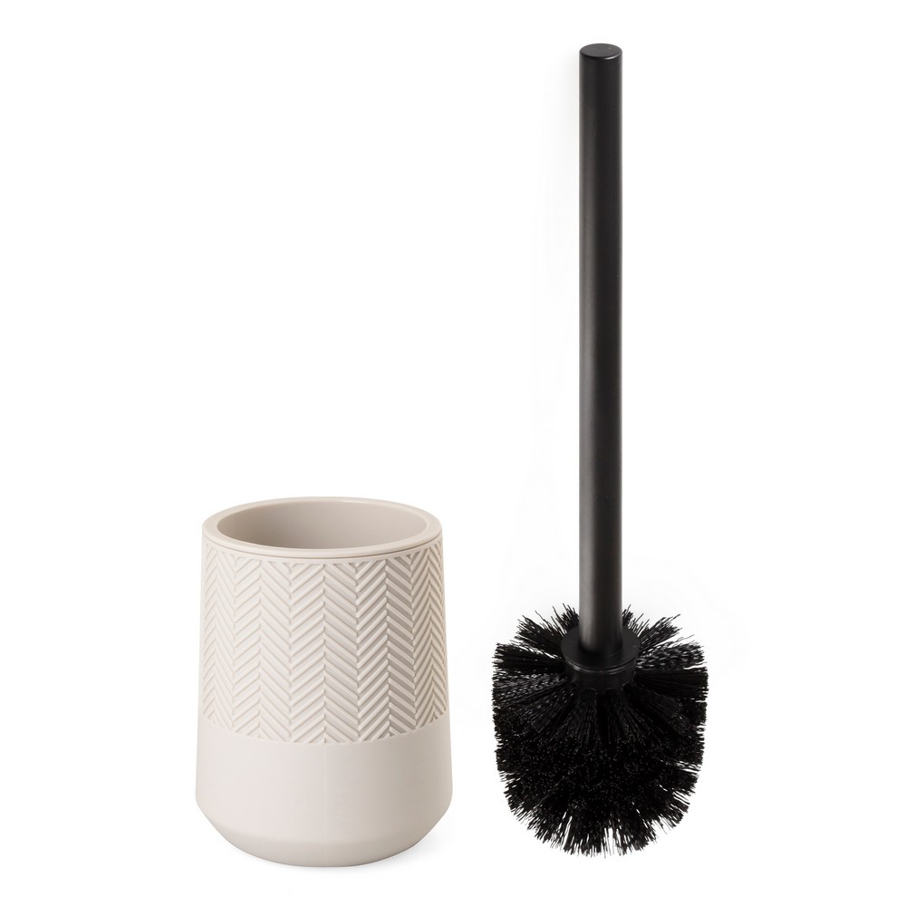 WC kefa Hermosa je elegantný a funkčný prvok, ktorý sa skvele hodí do moderných interiérov. Držiak vyrobený z vysoko kvalitných materiálov v béžovej farbe sa vyznačuje štýlovým vzorom rybej kosti, ktorý kúsku dodáva jedinečný charakter. Čierna kefa nielen vytvára výrazný kontrast s držiakom, ale taktiež zaisťuje účinnosť a pohodlie pri používaní. WC kefa Hermosa vďaka svojej pevnej konštrukcii spája estetiku s praktickosťou a je tak nielen užitočným doplnkom, ale aj štýlovým doplnkom kúpeľne. Je to ideálne riešenie pre tých, ktorí vo svojom okolí oceňujú eleganciu a moderný design.