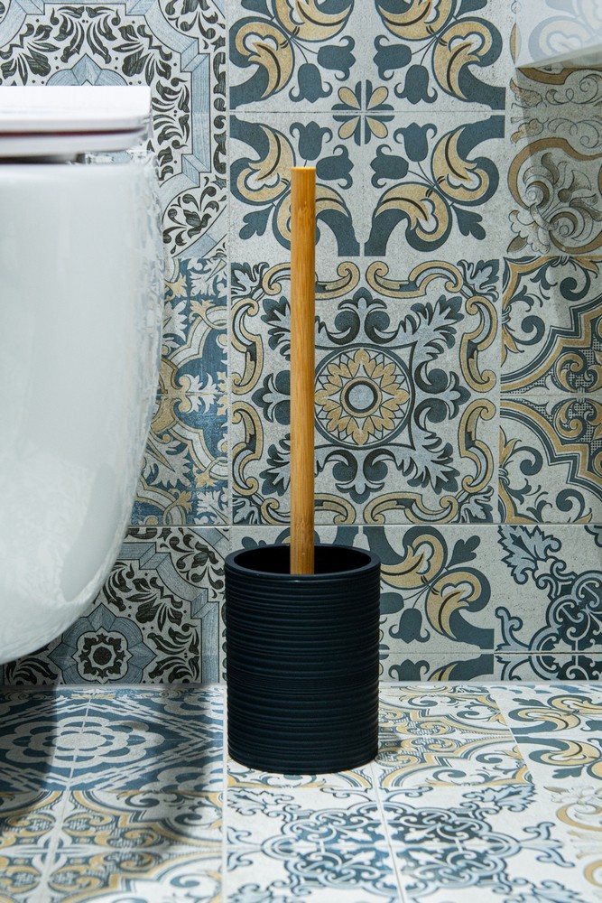 Voľne stojaca WC kefa kombinovaná matne čiernou plastovou nádobkou a štetkou s rukoväťou z bambusu . Ideálny doplnok do vašej kúpeľne v kombinácii s podobnými vešiakmi, držiakmi a pod.