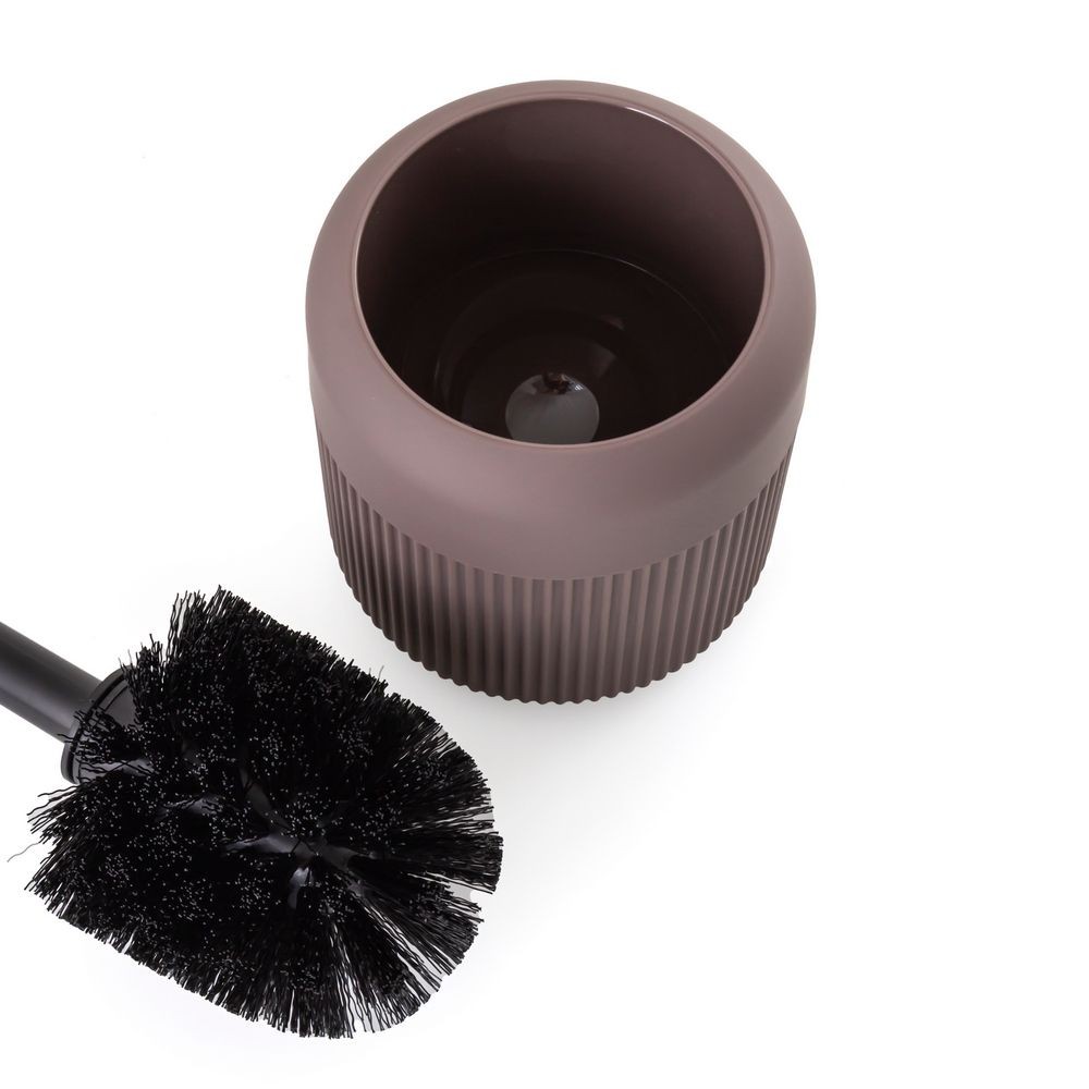 WC kefa zo série Loreto v mimoriadnej tlmenej slivkovo fialovej farbe je skutočnou ozdobou kúpeľne. Držiak kefky je vyrobený z matného plastu, ktorý mu dodáva elegantný vzhľad, a vďaka ozdobným drážkam je mimoriadne estetický. Rukoväť a čistiaca hlavica kefky sú navrhnuté v sýto čiernej farbe, ktorá krásne dopĺňa tlmenú fialku držiaka, vďaka čomu je WC kefa radu Loreto jedinečnou dekoráciou do kúpeľne.