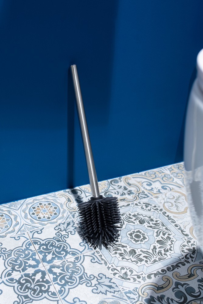 Toaletná kefa so špeciálnou silikónovou koncovkou. Gumový materiál uľahčuje čistenie toalety a je oveľa praktickejší ako tradičné WC štetky.