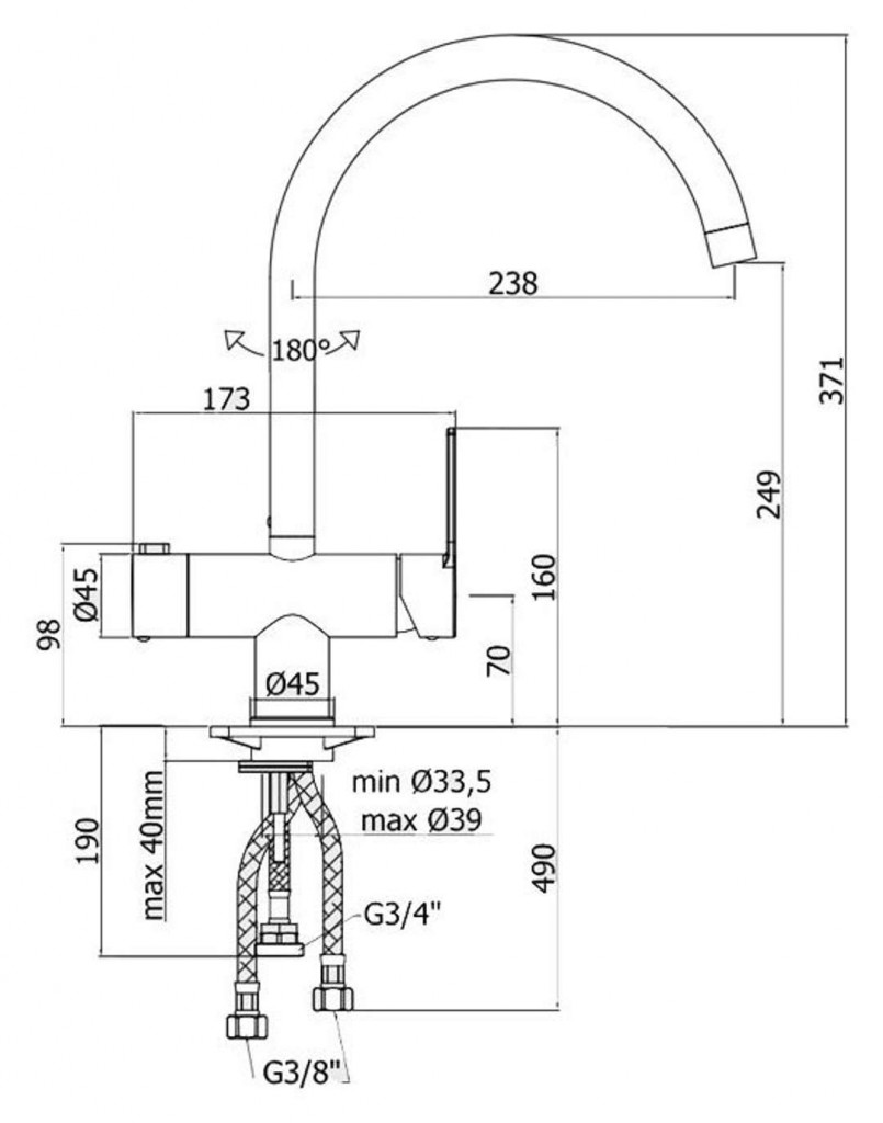 - dĺžka výtoku 238 mm